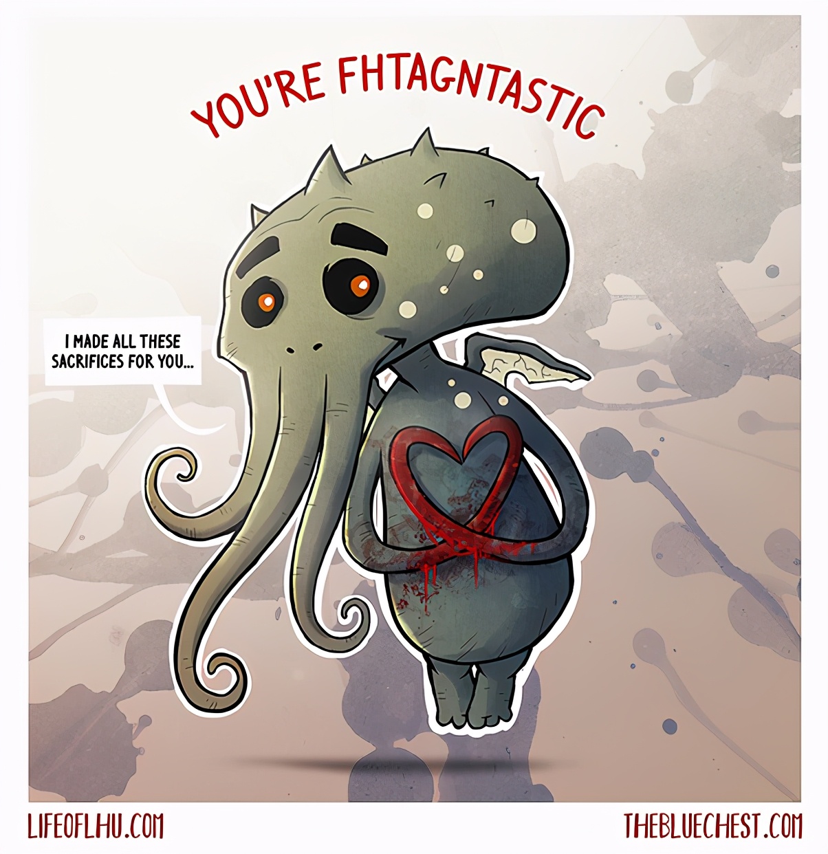 克苏鲁:曾经,我通过表现的和哥斯拉一样巨大来给信徒留下深刻印象(只在大的地方回应召唤)。但是这一切都变了,我变了…… 如今,即使是人们在狭小空间召唤我,我也会回应。我让自己不再受局限。我不再追求喧嚣,而是寻找一种真实的联系。