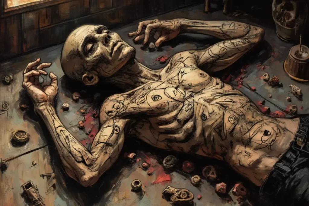 我帮忙处理最近的一个。那是个看起来只有二十出头的白人青年,脸上还带着未褪尽的稚气,此刻却只剩下空洞和扭曲的痛苦。皮肤上的刻痕触目惊心。我注意到他的手指以一种奇怪的角度蜷曲着,仿佛在虚空中弹奏着不存在的琴键。