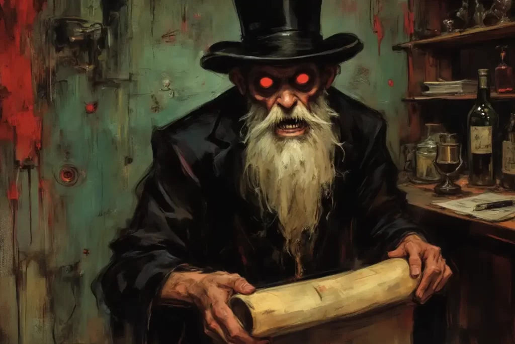就在我漫无目的地闲逛时,一个衣衫褴褛的老人拉住了我。他的皮肤被岁月刻上了深深的皱纹,一双干瘪的眼睛却闪烁着异样的光芒。他坐在一个破旧的木箱上,手中把玩着一个晒干的牛皮制成的卷轴。老人抬起头,用他那沙哑而低沉的声音对我说:“那团光,我是说其格斯—加克奈洛,包阔光噬会,是不值得信任的!”
