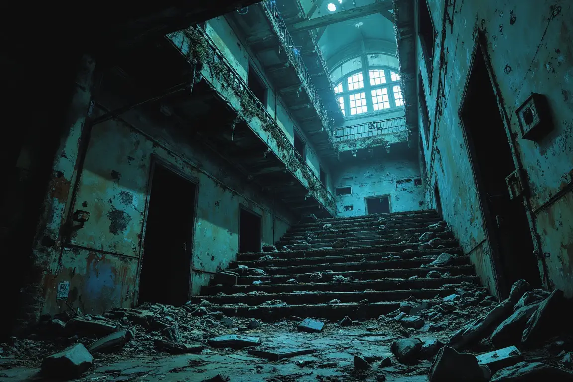她走进去,一楼大厅和她记忆里一模一样,破旧的告示栏,落满灰尘的地面,通往二楼的楼梯。