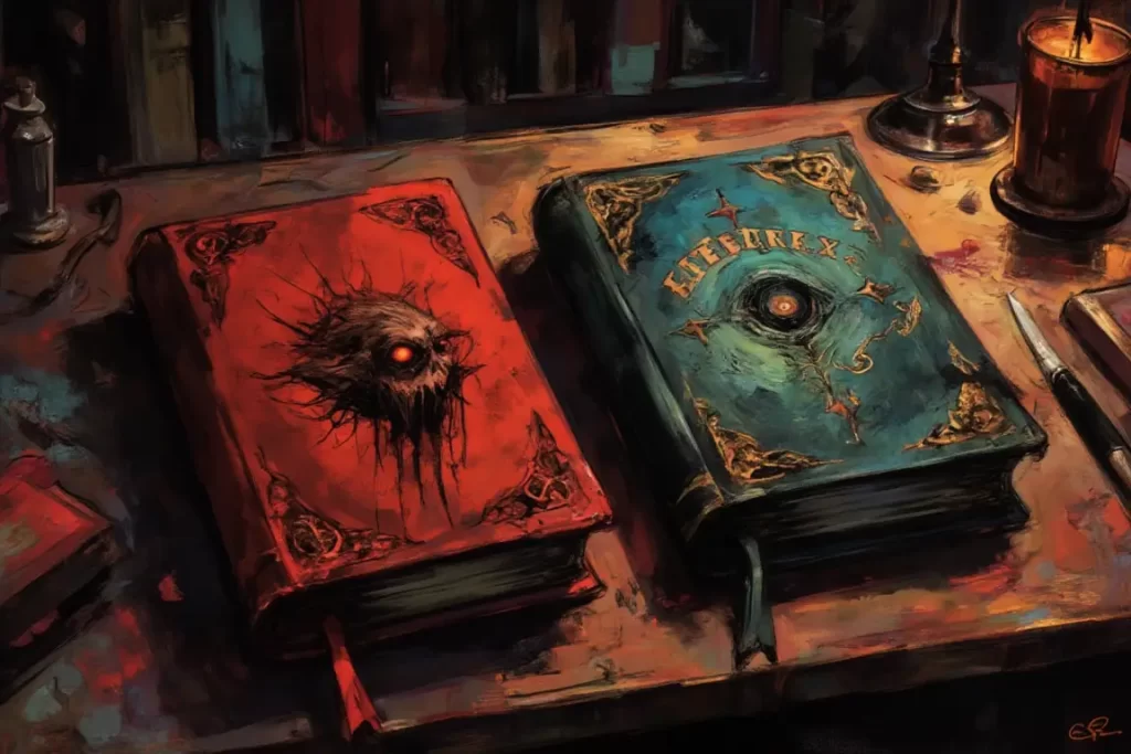 《死》书构建了以星象为“神圣语法”的宇宙学,星辰的方位是知识本身的动态铭文。《纳》本提出的“垂降理论”(Desensus Theory)在此基础上更进一步。它宣称,某些被标记的“暗星”(如文本中反复涂改的“Yuggoth”或“Xoth”)并非物质实体,而是某种元文本信息(Ur-Text)的发射源。这些信息以“概念纤维”(Fibrae Intellectuales)的形式穿越心智空间,当“垂降”至人类可理解的符号域时,便凝结为《死》书中那些自相矛盾、逻辑断裂的篇章。因此,《纳》本将自己定位为一个接收与记录干涉的装置——它记载的是这些“垂降纤维”与地球上既有的《死》书文本碰撞后产生的“衍射图样”与“畸变回声”。从这个视角看,二者的关系不再是源头与支流,而是原始信号与本地化接收日志的关系。这一模型将文本的生成置于一个动态的、非人的宇宙信息生态中,极大地挑战了以作者意图为中心的阐释学。