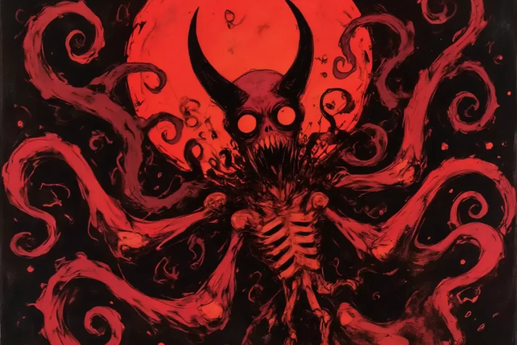 天呐,那个东西……它有一颗巨大的血红眼珠,那非人的构造布满了腐竹般的经脉和恶心的囊泡,触手上长着触手,正在濒死地晃动着,好像一只被翻过来的千足虫,那些金属般的龙鳞和颤动的肉块啊……啊啊啊……